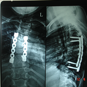 he was operated from front of the neck, a new vertebra(tricortical bone graft) was